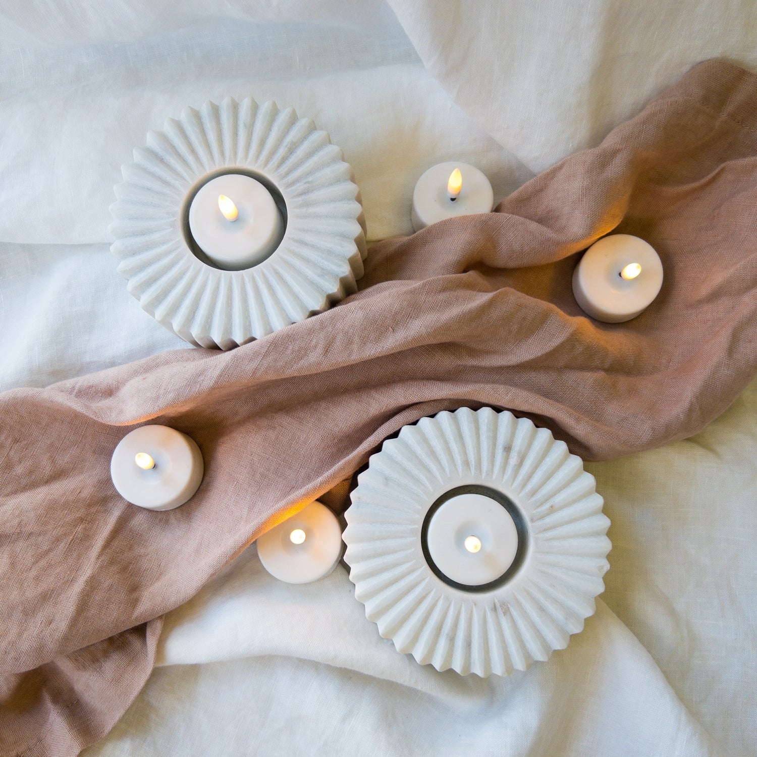 Our LED lights are conveniently remote enabled so as to suit your desired timing and brightness without reducing the realistic mesmering experience of a candle.