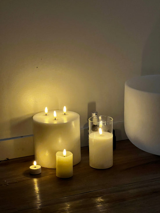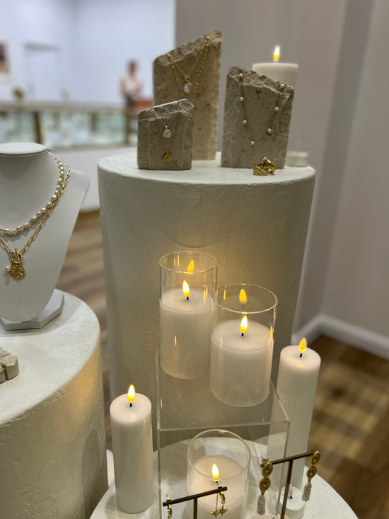 Be immersed in the beauty, warmth and moonlit like glow as our battery-operated, real wax, smokeless & flameless candles safely yet beautifully elevate any space for all occasions.