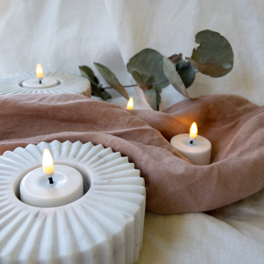 TEALIGHTS - Available in Iconic White real wax they are slightly smaller then a typical tealight so will fit in most holders and are not remote enabled at this stage unfortunately.