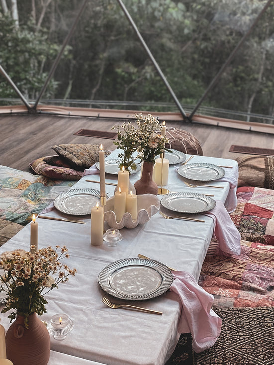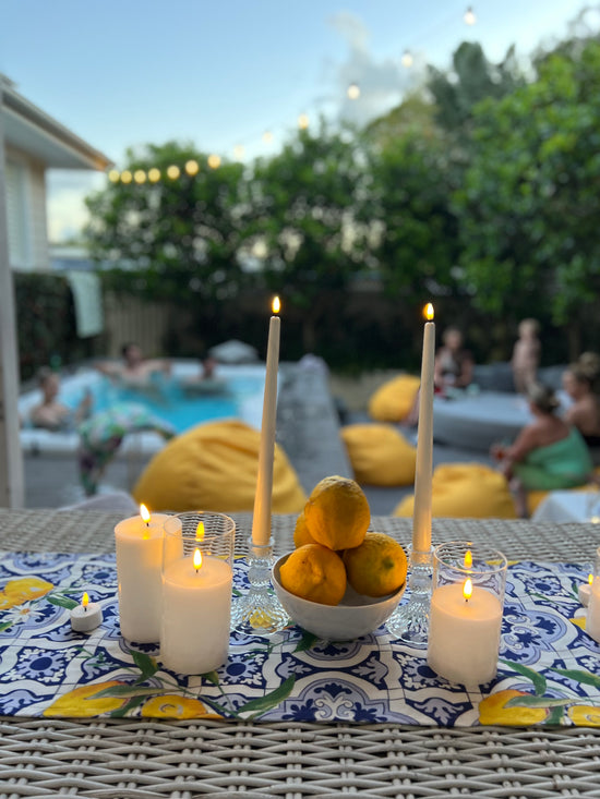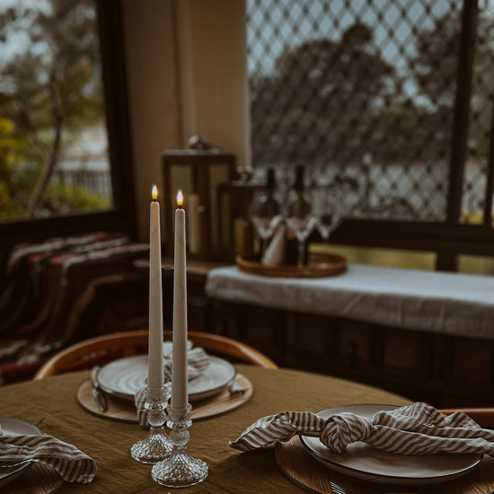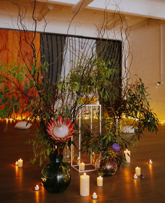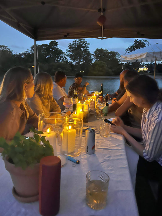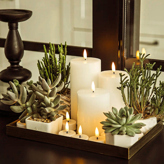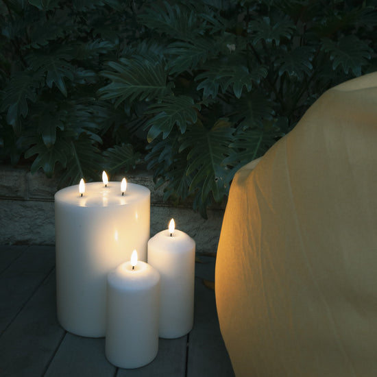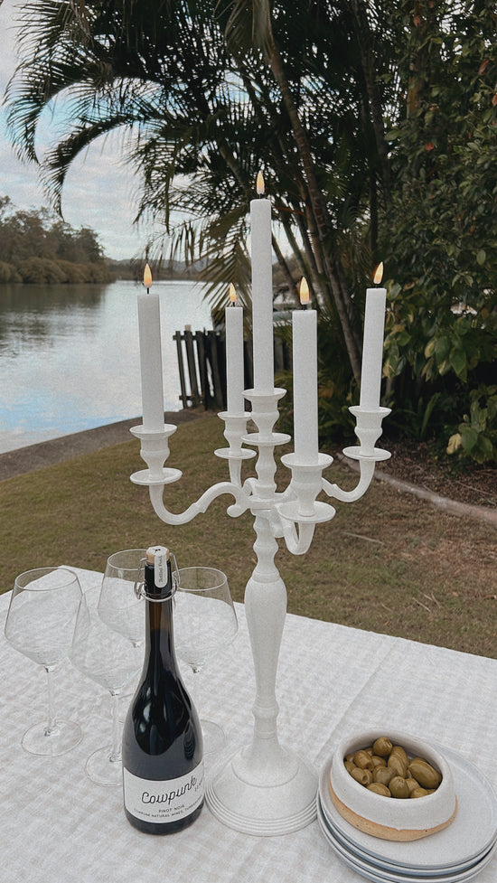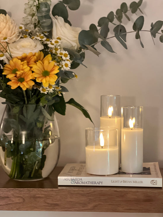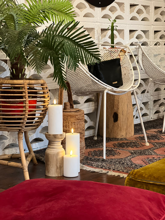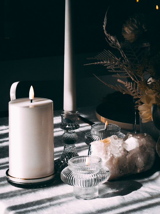 The ability to select varying heights, and styles in either our white or ivory real wax candles allows event planners to create a cohesive design that aligns with the theme of the occasion. Furthermore, most of our flameless candles for hire come equipped with a timer and brightness remote control, providing added convenience for event coordinators. (Please note: select sets have an auto 8r timer function only).